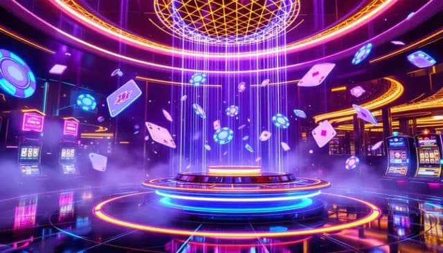 Medicine shelf. Clinical bottles with clean labels. But inside: neon Vegas chaos - dice, cards, cocktails. Organization meets temptation.